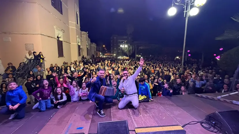 Con il calare del sole, il palco si è acceso con l’energia di Stefano Priolo e Nino De Francesco, protagonisti di un concerto travolgente che ha coinvolto l’intera piazza.